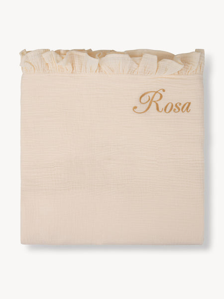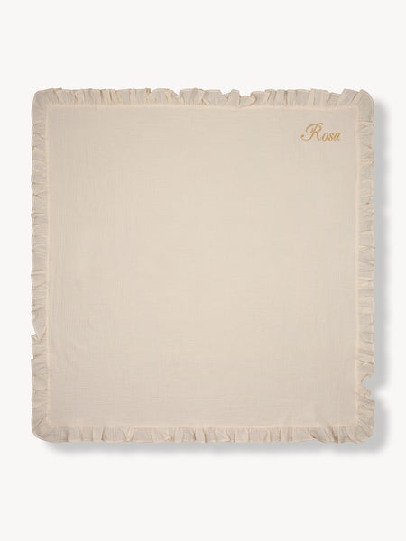 • Diese Rüschen-Mullwindel ist nicht nur ein echter Blickfang, sondern auch die Lösung für alles! Als zusätzliche Decke im Kinderwagen, zum Auffangen von kleinen Bäuerchen über der Schulter oder als Handtuch nach einem warmen Bad. Und wie schön ist diese personalisierte Rüschen-Mullwindel aus herrlich weicher Baumwolle: Ideal für dein Neugeborenes. Mache es noch persönlicher, indem du es mit den schönsten Stickgarnen personalisieren lässt. Hast du dich, wie wir, in die Rüschen-Mullwindel verliebt? Vervollständige das Set mit unseren Le Olive Baby Schnullertüchern.