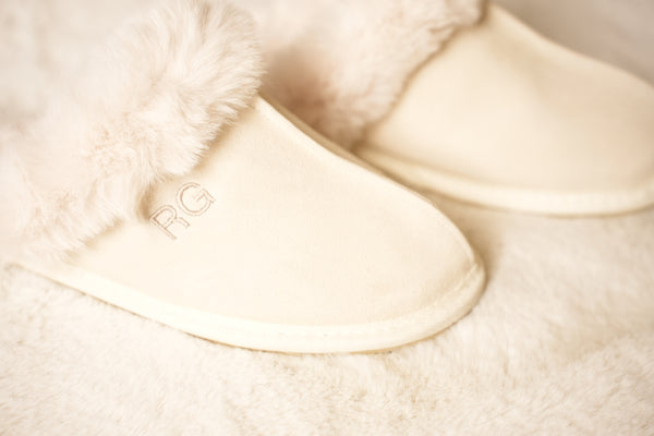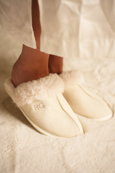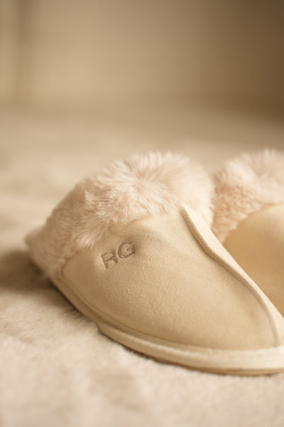 • Gönn dir unsere luxuriösen Pantoffeln! Die Pantoffeln sind aus Veloursleder gefertigt und sorgen für angenehm warme Füße und ein elegantes Aussehen. Dank ihrer wunderschönen Farben passen sie zu jedem Schlaf- und Lounge-Outfit aus unserer Le Olive-Kollektion. Perfekt für deine Entspannungsmomente! Personalisiere die Hausschuhe mit deinen Initialen. Dies wird liebevoll in unserem Atelier mit den schönsten Stickgarnen gemacht.