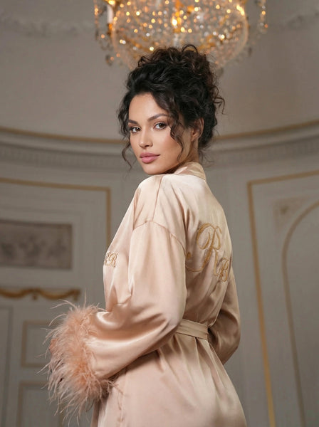 • The Kimono Feather Nude of the "Holiday Collection" by Rose Bertram is super elegant. The fabric is soft and the feathers give the kimono that extra chic look to feel cozy at home and looking fabulous at the same time! Make your item unique by personalise it with our lovely embroidery colours. Remember that this 'Holiday Collection' has limited availability so we encourage you to shop your favorites before anyone else does! Xoxo Rose Bertram