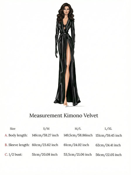 • The fabric of this kimono feels wonderfully soft and has a beautiful velvet look. The high slit makes this item super sexy and feminine. The long model creates a very chic look. And we could go on and on. I mean... what is there not to love?