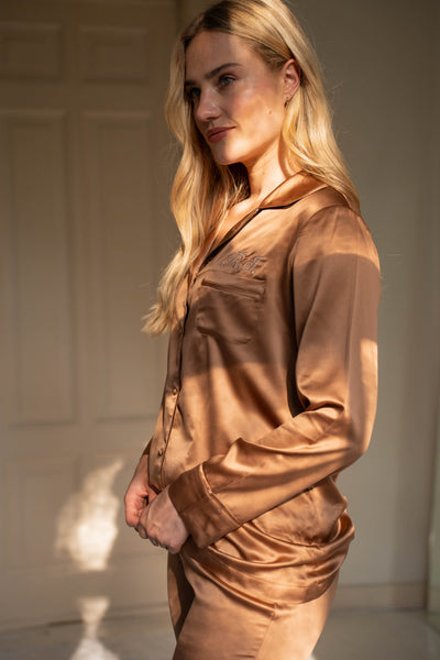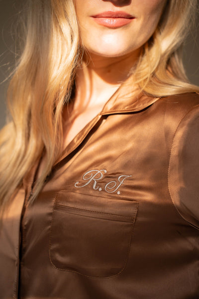 • Personalise your own pyjamas with an embroidery on the front. Select a colour and personalise your kimono with your name or initials. The colour of the personalisation is up to you. A pair of pyjamas is not only fun for yourself but also fun to give as a present. We offer the possibility to wrap the gift for you in a luxury gift box. You can complete your pyjamas with a matching sleeping mask! You can even have the sleeping mask personalised. Get ready to relax in style